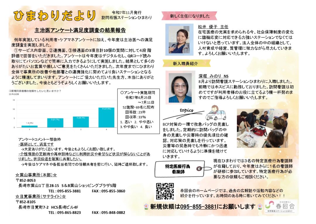 訪問看護ステーションひまわり ひまわりだより11月号を作成いたしました。ぜひ、ご覧ください。