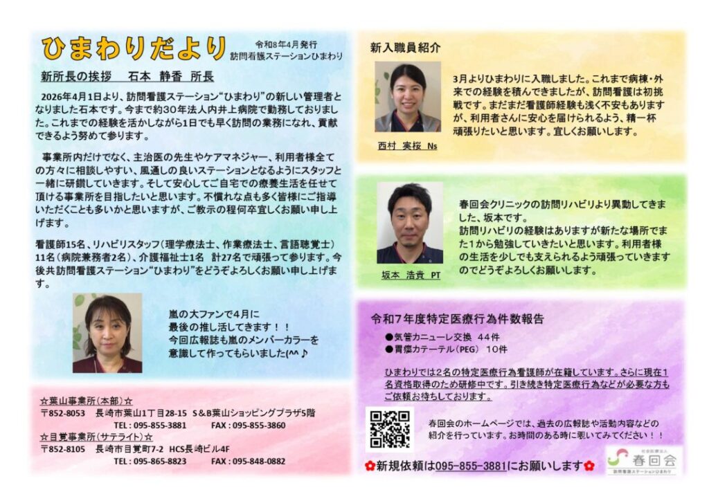 訪問看護ステーションひまわり ひまわりだより4月号を作成いたしました。ぜひ、ご覧ください。